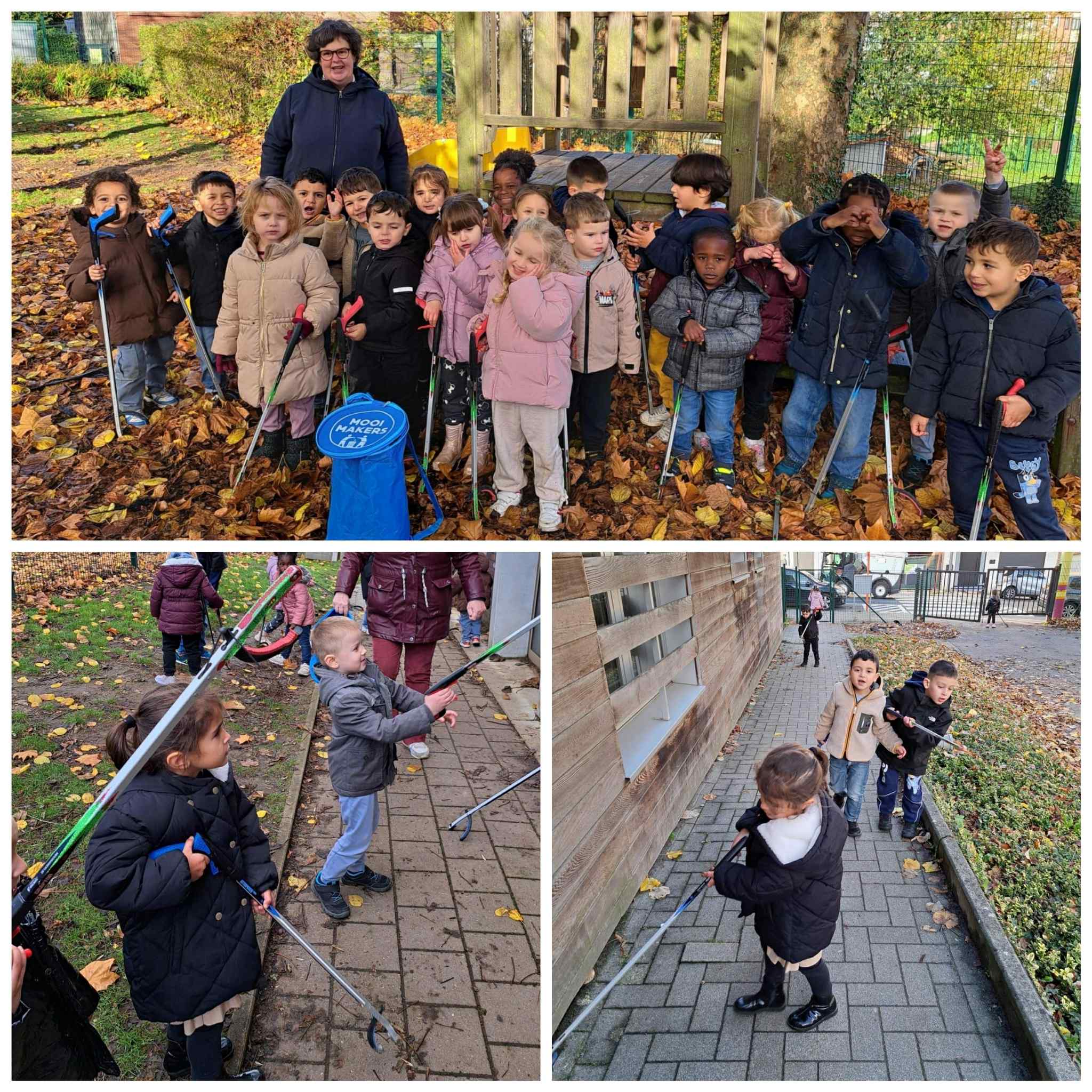 Met grijpstok en vuilniszak in de hand zijn onze kleuters echte ‘Propere Mooimakershelden’! 💪🏼
